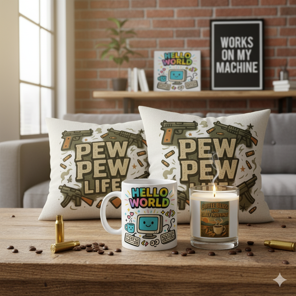 We don’t do mass-produced. Every shirt, mug, pillow, candle, and print is made to order with premium materials, so it lasts, looks better, and feels like it was made just for you.